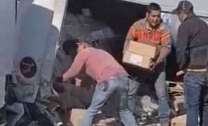 Varias personas se acercaron pero no para ayudarlo, sino para robar la carga, consistente en alimentos procesados, enlatados y algunos granos en costales.