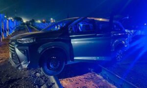 Los oficiales fueron en su persecución hasta la avenida Sauce y la calle Guayabitos, en el fraccionamiento Hidalgo, donde la camioneta quedó atorada en las vías del tren.