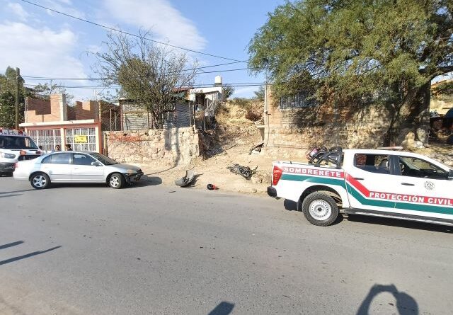 ¡Un lesionado dejó desigual choque entre una motocicleta y un auto en Sombrerete!