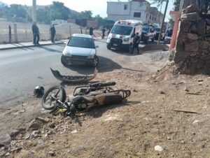 Tripulaba una moto Italika FT150 TS, modelo 2023, en colores negro y amarillo, sin placa de circulación y colisionó contra un auto Honda Civic, modelo 2023, en color gris, conducido por Judith Elena “N”, de 39 años y con domicilio en Sombrerete.