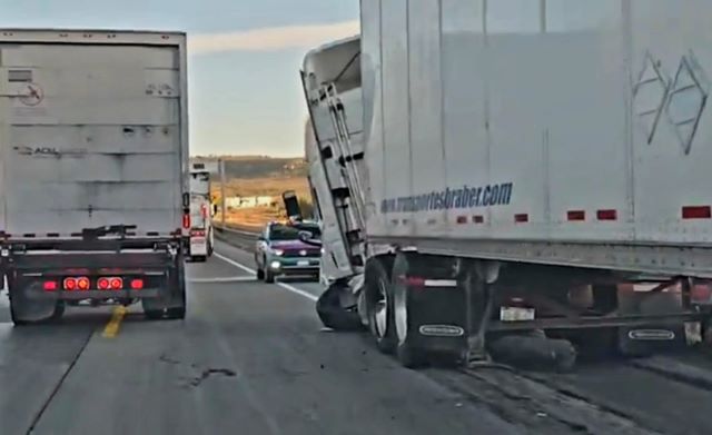 Tras el violento impacto, el VW Jetta terminó frente a la barrera de contención e invadiendo el acotamiento y parte del carril de circulación de norte a sur, mientras que el tráiler avanzó unos metros hasta que el chofer se detuvo junto a dicha barrera.