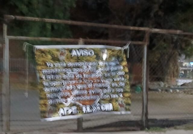 AGUASCALIENTES, AGS.- La facción F.E. CHA (Fuerzas Especiales Charro), célula del Cártel Jalisco Nueva Generación (CJNG), colocó varias narco-mantas en diferentes puntos de la ciudad durante la madrugada de este martes con mensajes amenazantes.