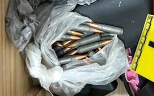 Durante la diligencia fue detenido José de Jesús, a quien se le aseguró una bolsa de plástico con 2 mil pastillas de fentanilo, un arma de fuego corta con un cargador insertado, 45 cartuchos útiles calibre 7.62×39 para rifle de asalto AK-47 (“cuerno de chivo”), 10 cartuchos útiles calibre 9 milímetros, dos teléfonos celulares y dos vehículos.