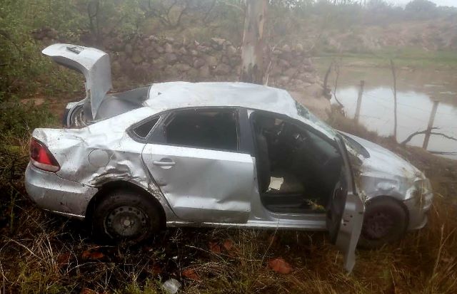 ¡Volcadura de un auto en Teúl de González Ortega dejó tres lesionados!