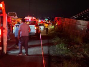 ¡Volcadura de un autobús de pasajeros en Aguascalientes dejó 3 muertas y 25 lesionados!